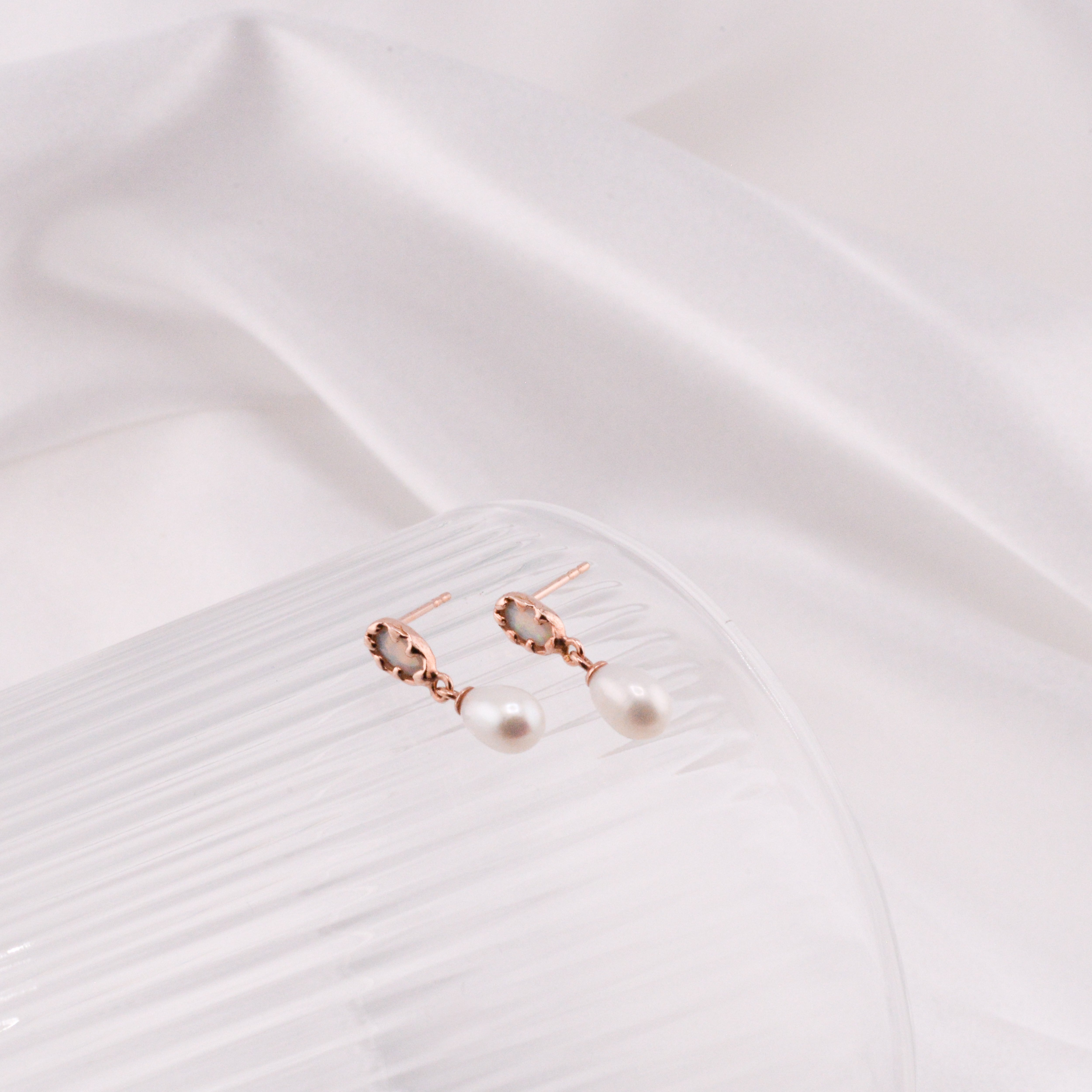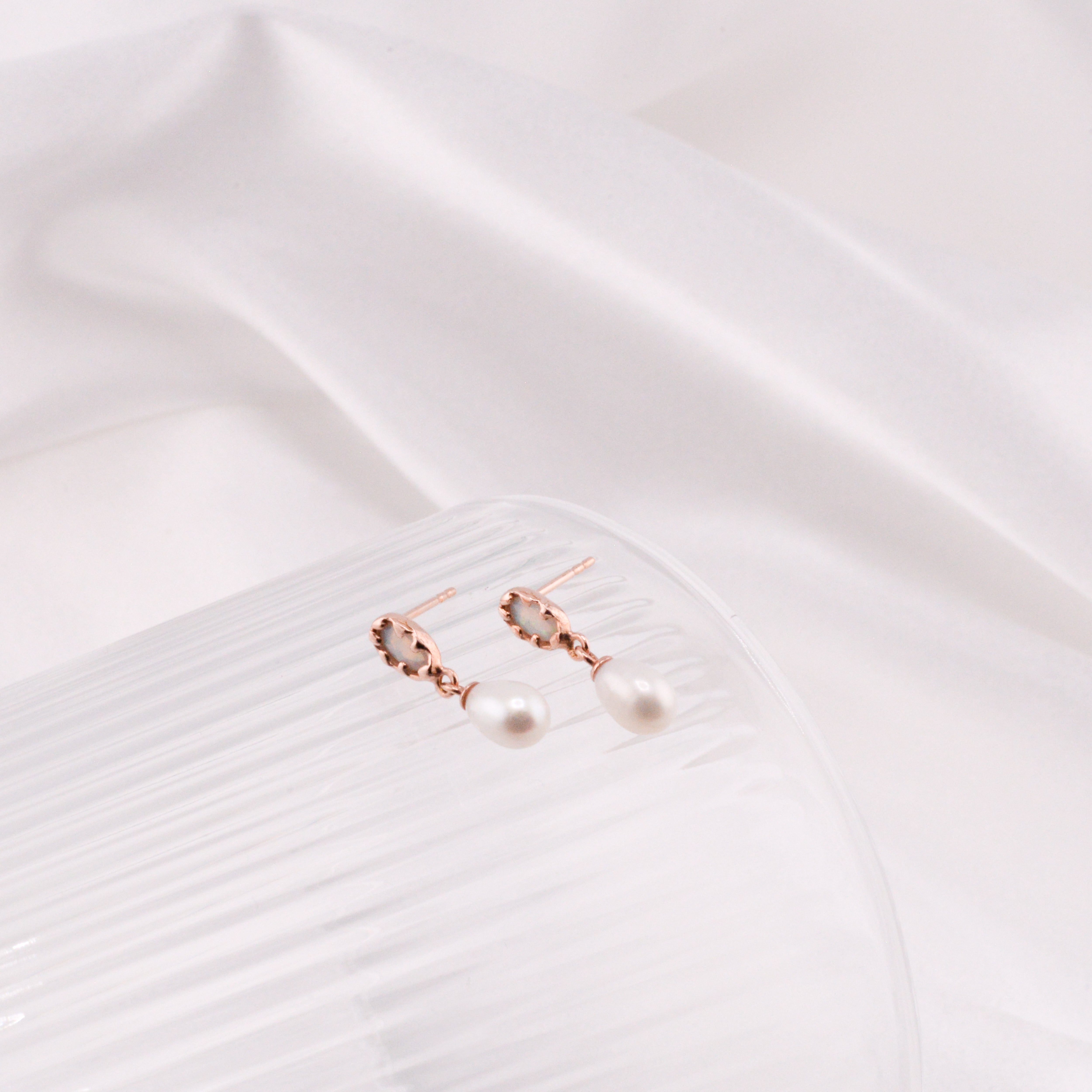 Oval opal mud with pearl drop Earring (solid opal/ single) - 14K/ 18K Gold